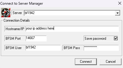 sudo systemctl status bf1942.service🎮 Connect to BFRM (BFSMD Mode)